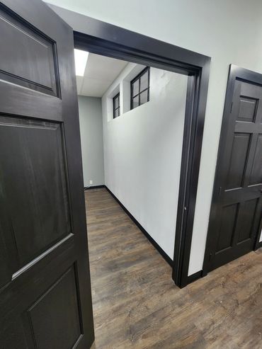 This small office was a unique challenge. The client needed two small offices within the larger space. Due to the client's business needs, the rooms needed to be soundproof. Sound-deadening insulation was installed in the exterior walls. For the dividing wall between the offices, a double wall was constructed with offset studs and insulation to eliminate sound transfer. Reclaimed doors and windows from the client added a personal touch to the project. Contact us to learn more about this project and get started on yours.